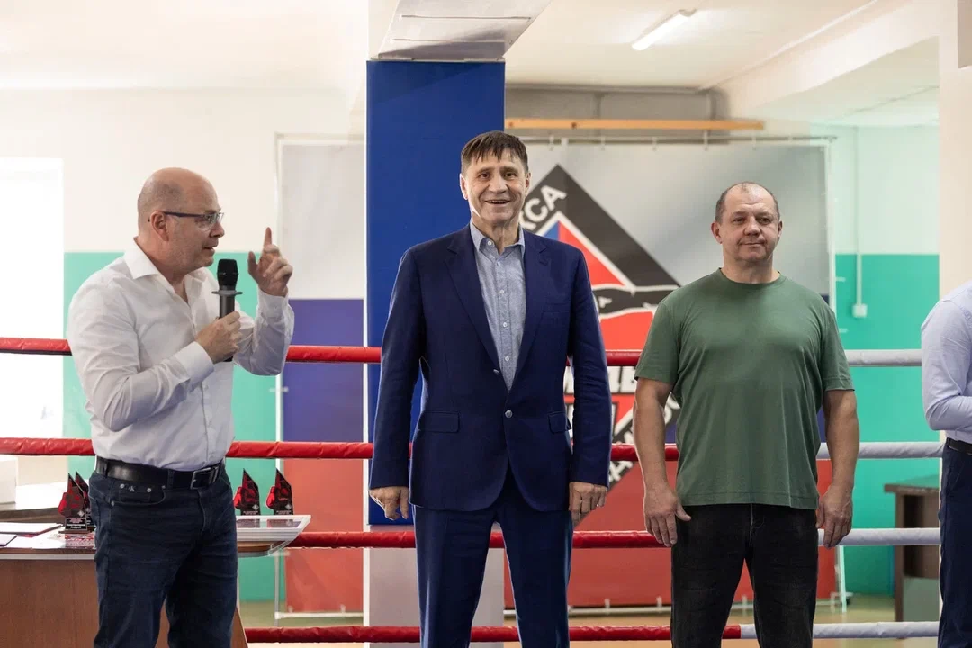 Председатель Думы города Владивостока Андрей Брик поздравил директора Александра Саломыкова, тренеров и спортсменов с 45-летием со дня образования детско–юношеской спортивной школы бокса «Надежды ринга».