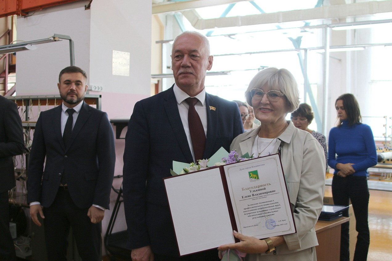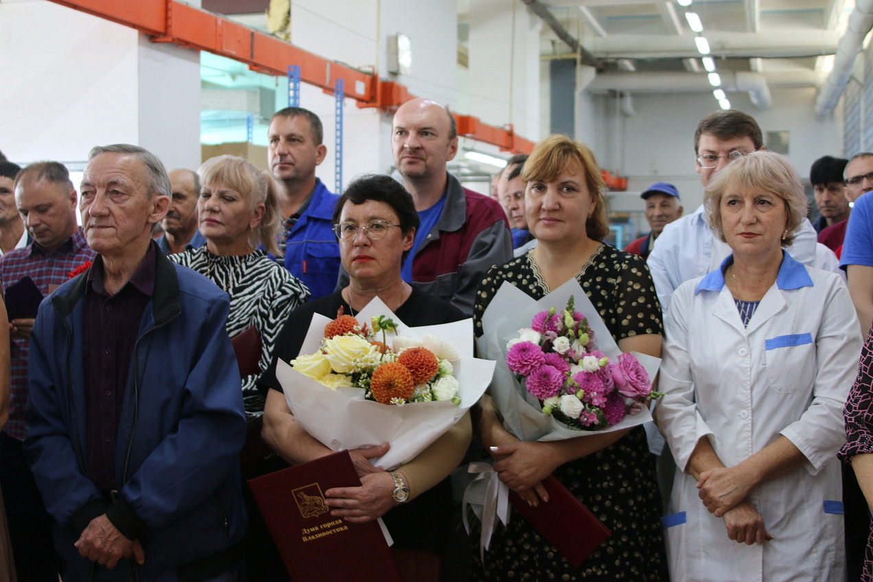 Почетной грамотой Думы города Владивостока награждены ведущий инженер по подготовке производства Светлана Имбировская, инженер конструктор Алексей Смольников, маляр пятого разряда Татьяна Ушакова, монтажник радиоэлектронной аппаратуры и приборов третьего разряда Анжела Черепанова. Благодарностью Думы города Владивостока награждены монтажник радиоэлектронной аппаратуры и приборов четвертого разряда Татьяна Авдеева, электромеханик по лифтам четвертого разряда Павел Александров, ведущий инженер-конструктор Алексей Венедиктов, монтажник радиоэлектронной аппаратуры и приборов третьего разряда Лилия Зарипова, водитель автомобиля Сергей Масленников, заместитель начальника типографии Елена Улькина.