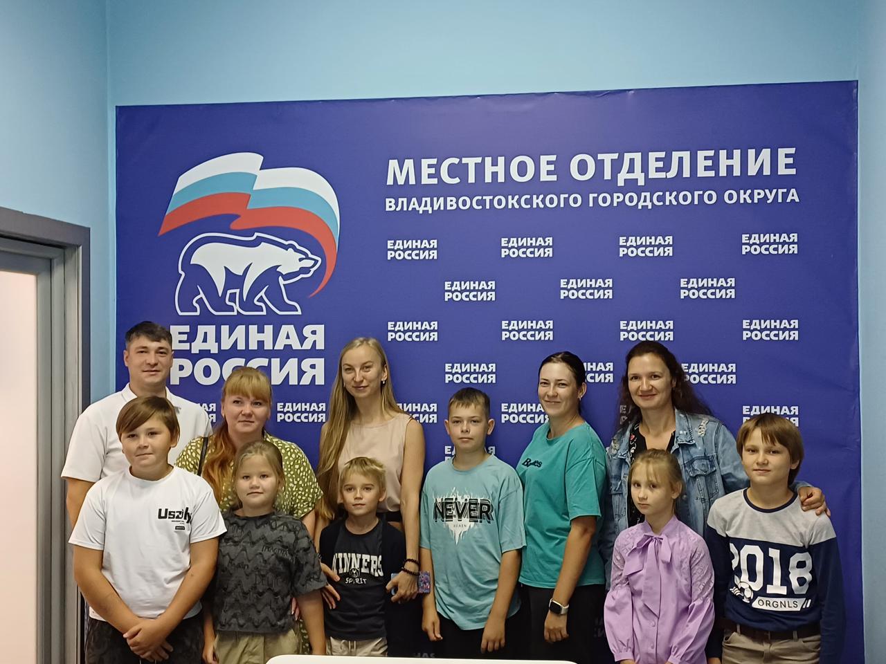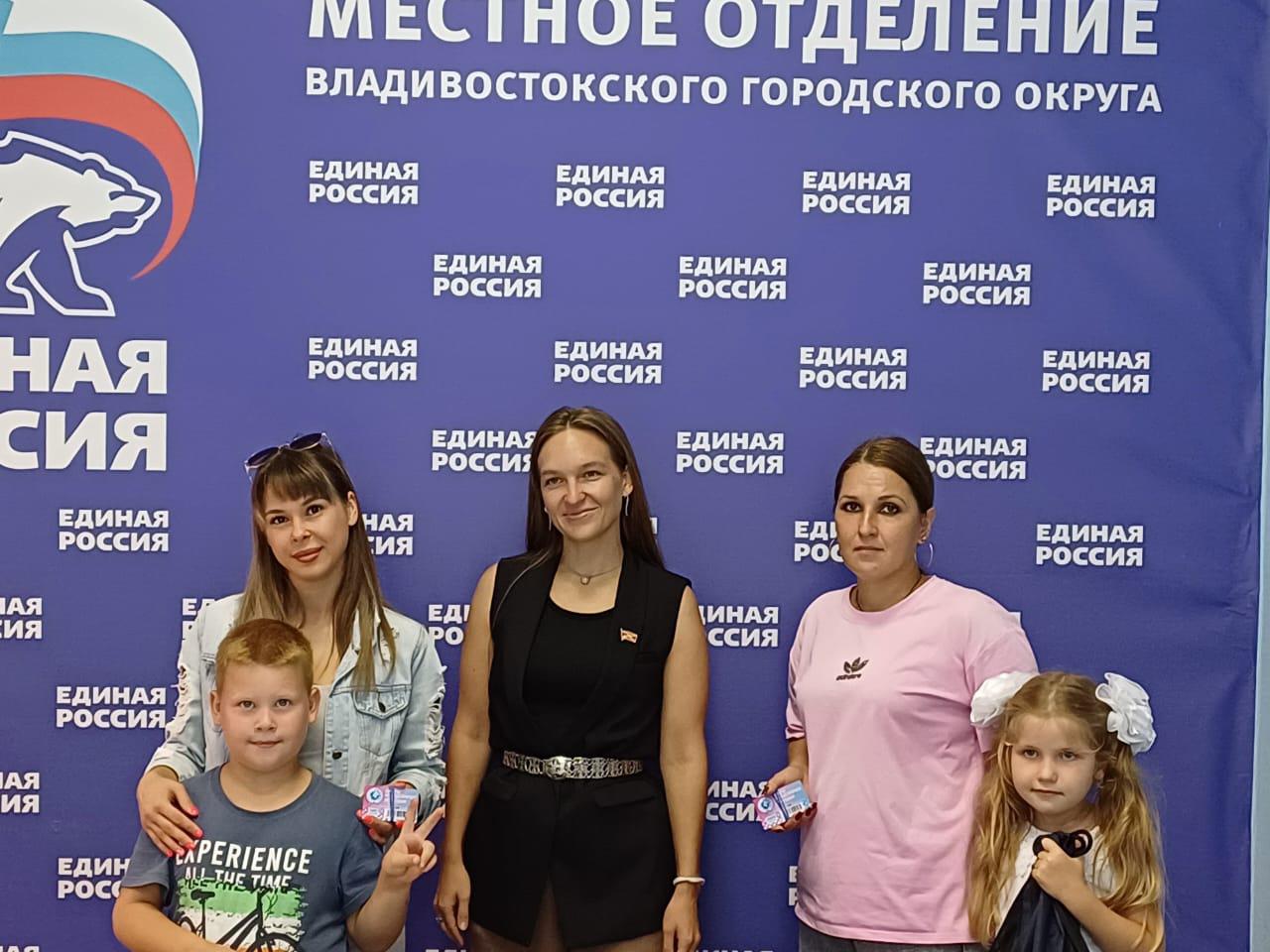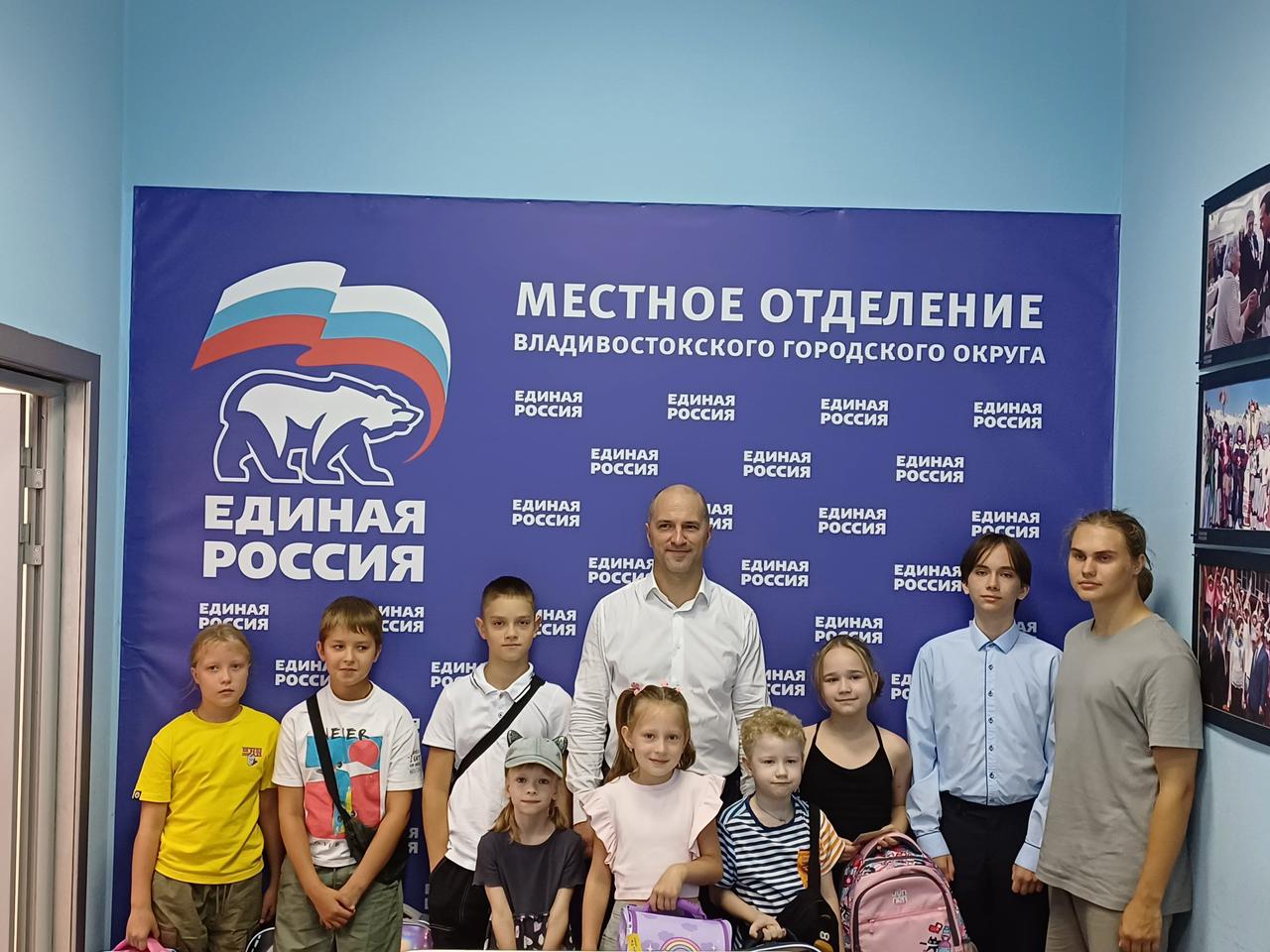 Партийцы городского отделения партии «Единая Россия» оказывают помощь детям в подготовке к школе не только во Владивостоке, но и далеко за его пределами. Так, в прошлом году, в преддверии 1 сентября, в рамках гуманитарной миссии, партийцы передали в г.Торез ДНР комплекты канцелярских принадлежностей и школьных рюкзаков для юных жителей города.