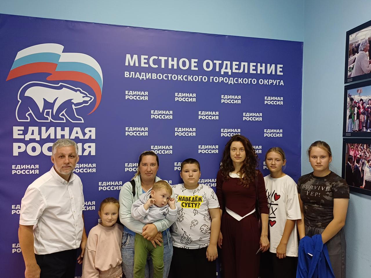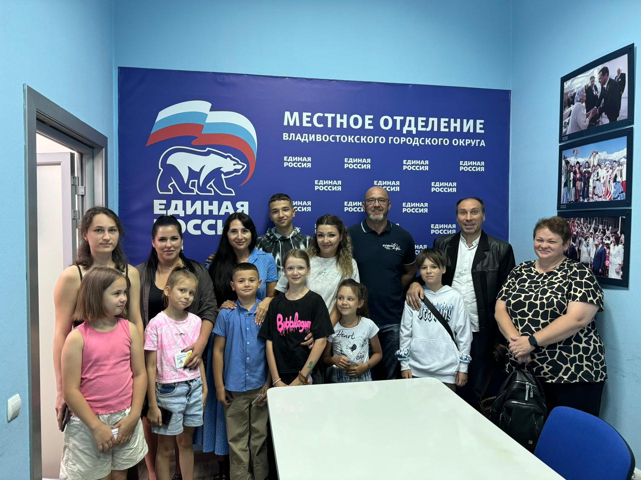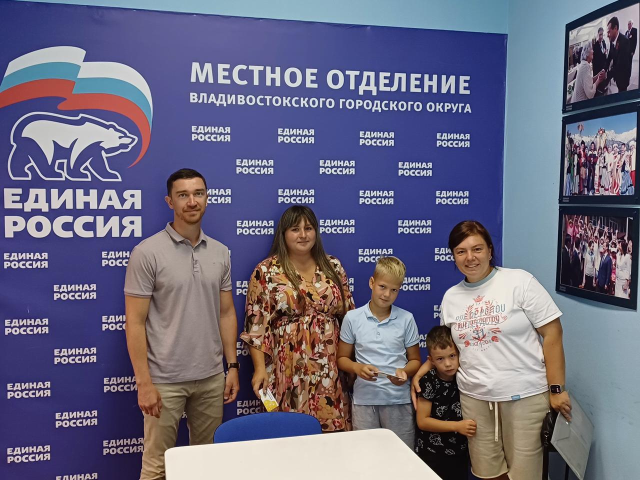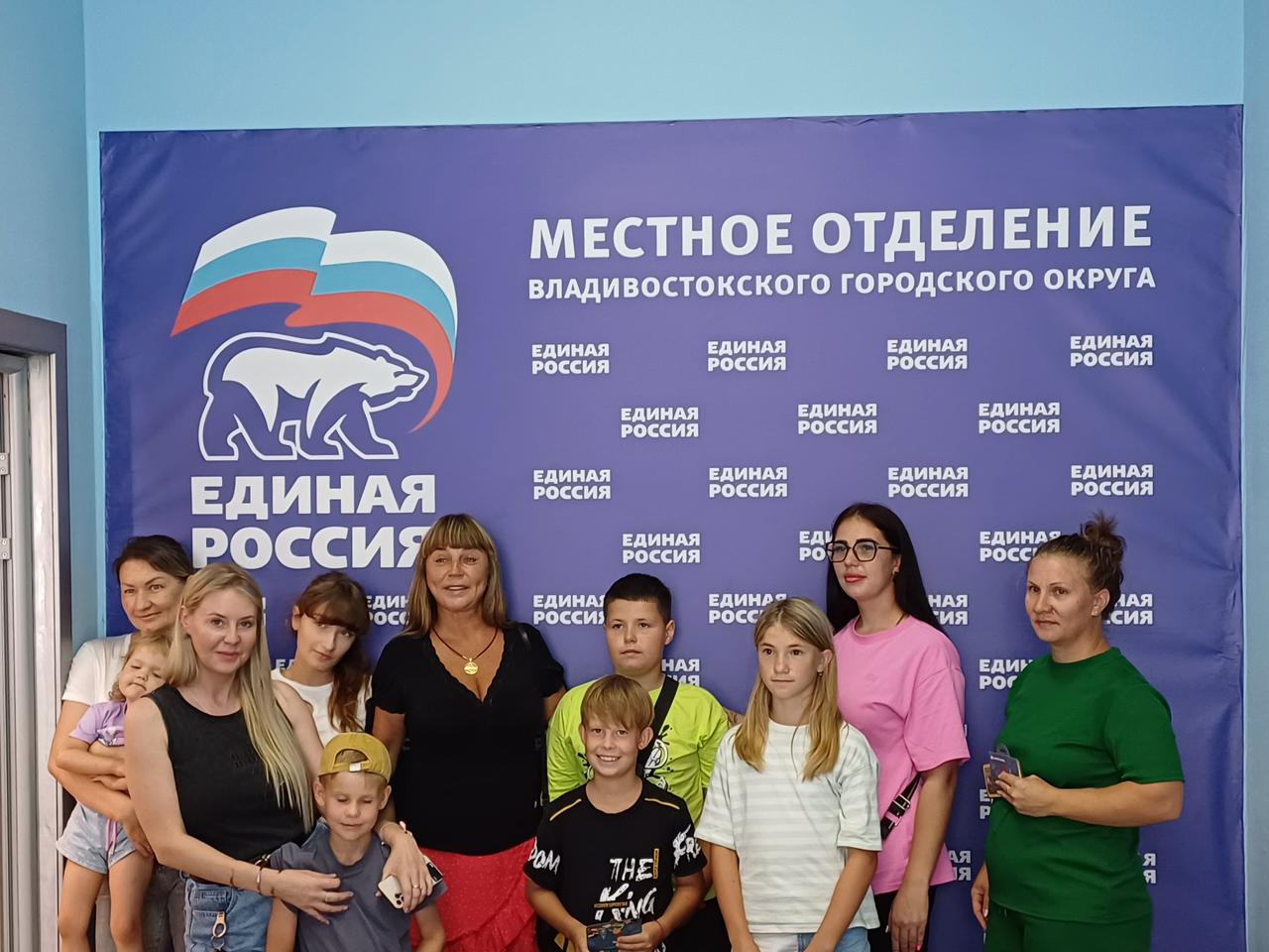 Партийцы городского отделения партии «Единая Россия» оказывают помощь детям в подготовке к школе не только во Владивостоке, но и далеко за его пределами. Так, в прошлом году, в преддверии 1 сентября, в рамках гуманитарной миссии, партийцы передали в г.Торез ДНР комплекты канцелярских принадлежностей и школьных рюкзаков для юных жителей города.