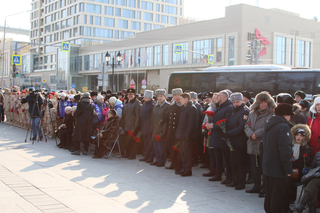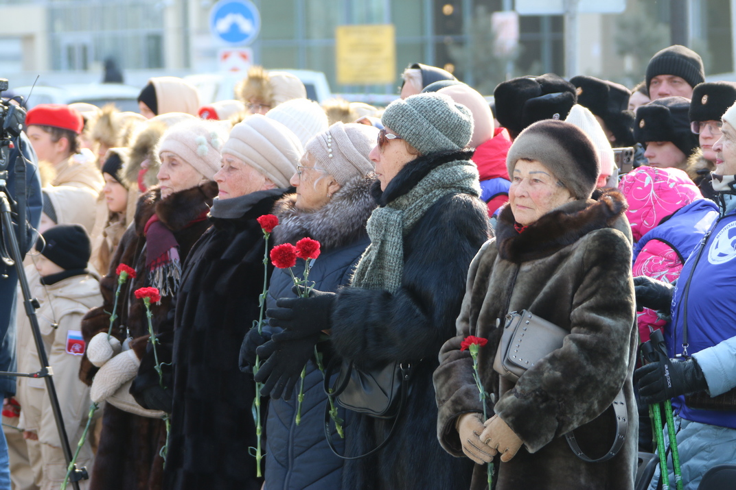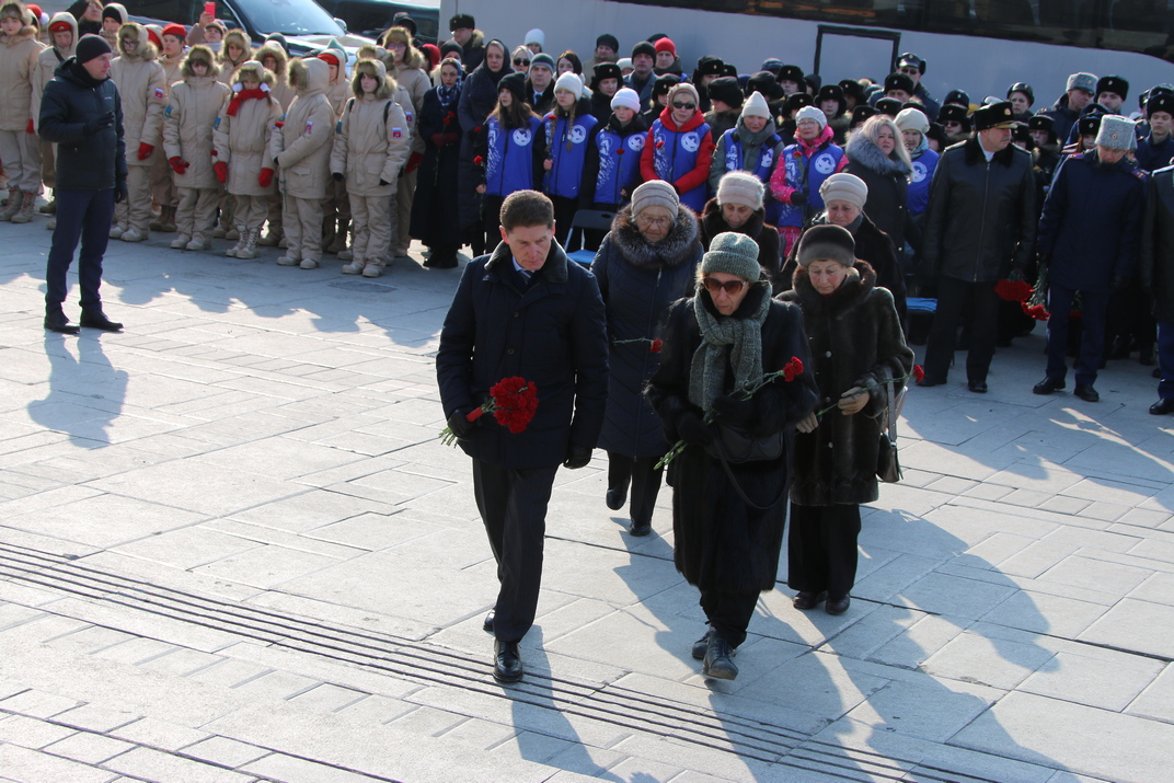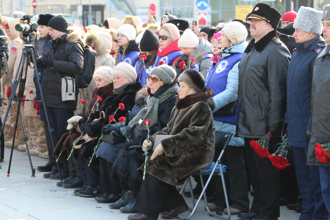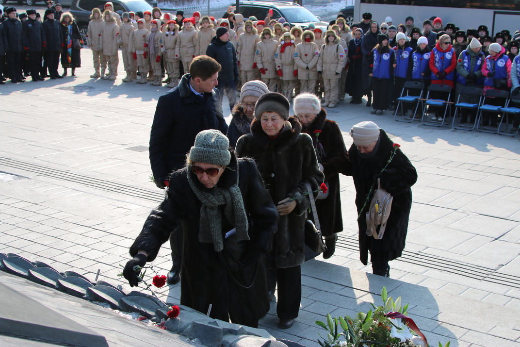 Участники мероприятия минутой молчания почтили память защитников и жителей блокадного Ленинграда и возложили цветы к Вечному огню.