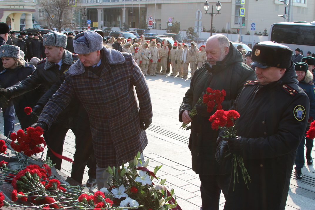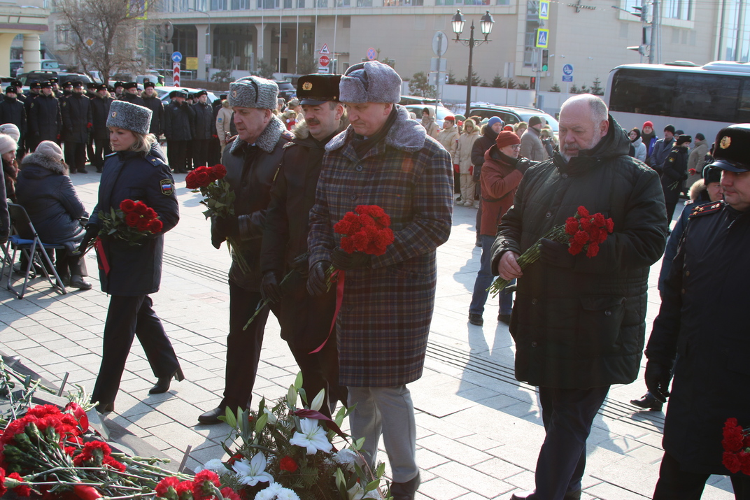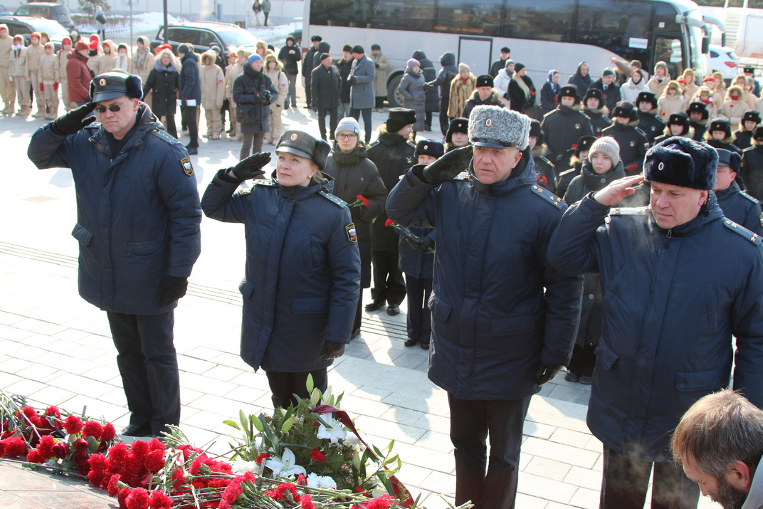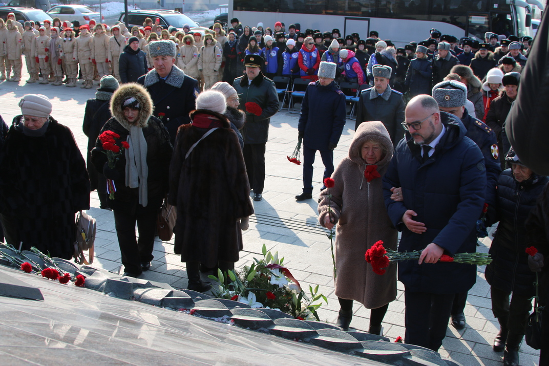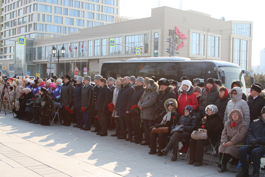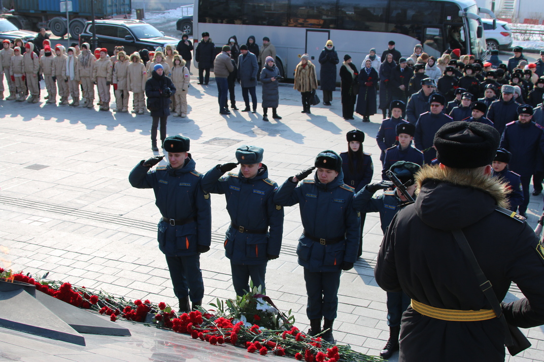 Участники мероприятия минутой молчания почтили память защитников и жителей блокадного Ленинграда и возложили цветы к Вечному огню.