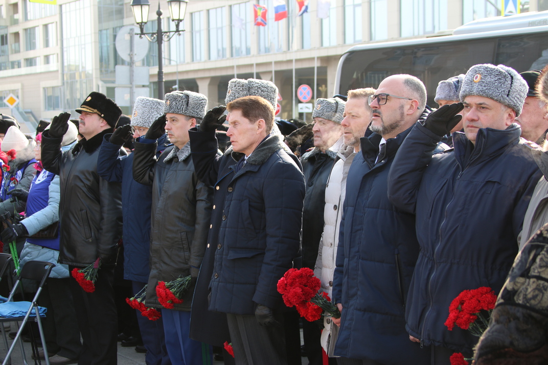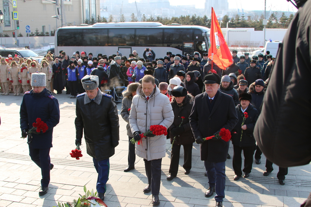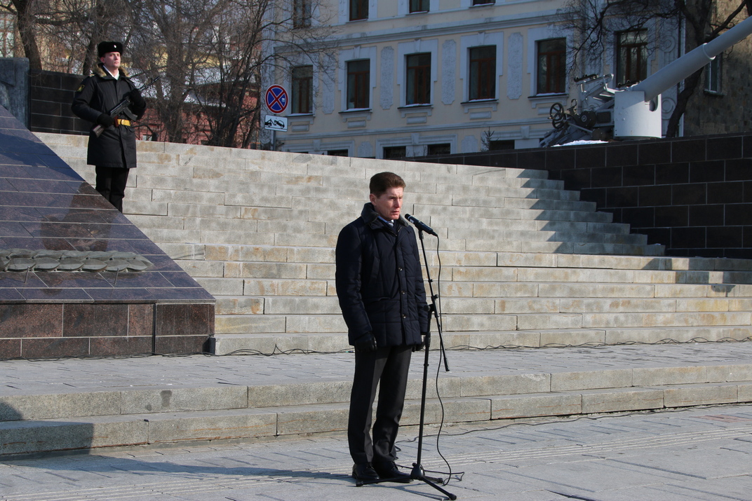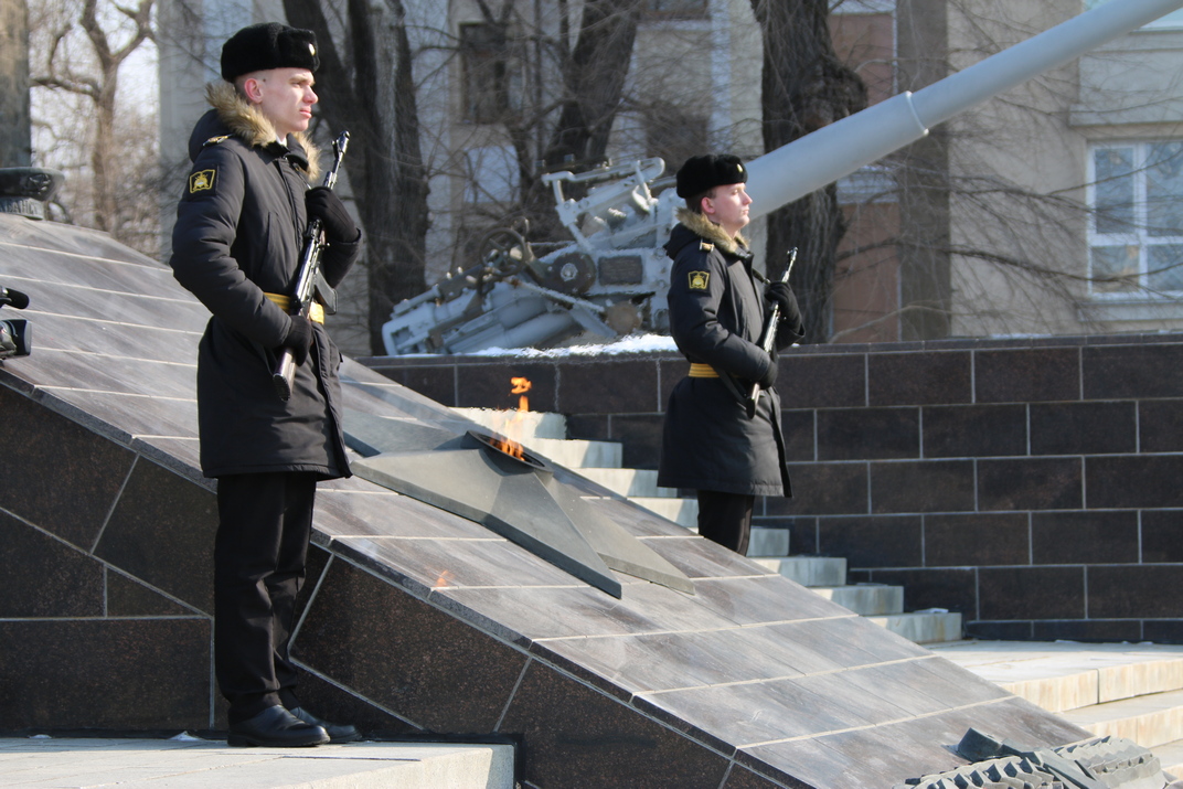 Торжественное мероприятие, посвящённое Дню полного освобождения Ленинграда от фашистской блокады, состоялось у мемориала «Боевая слава Тихоокеанского флота» во Владивостоке.