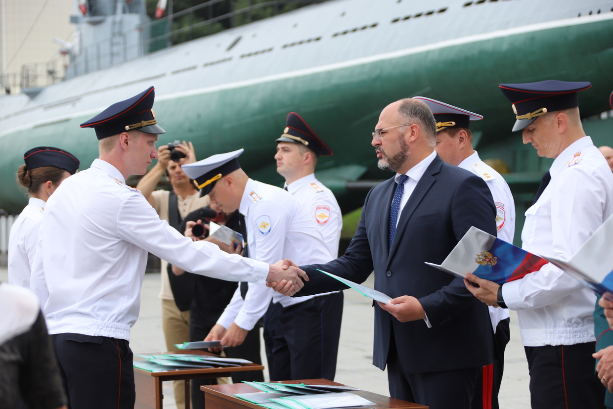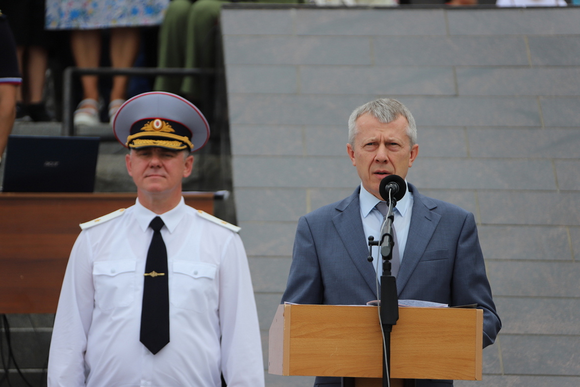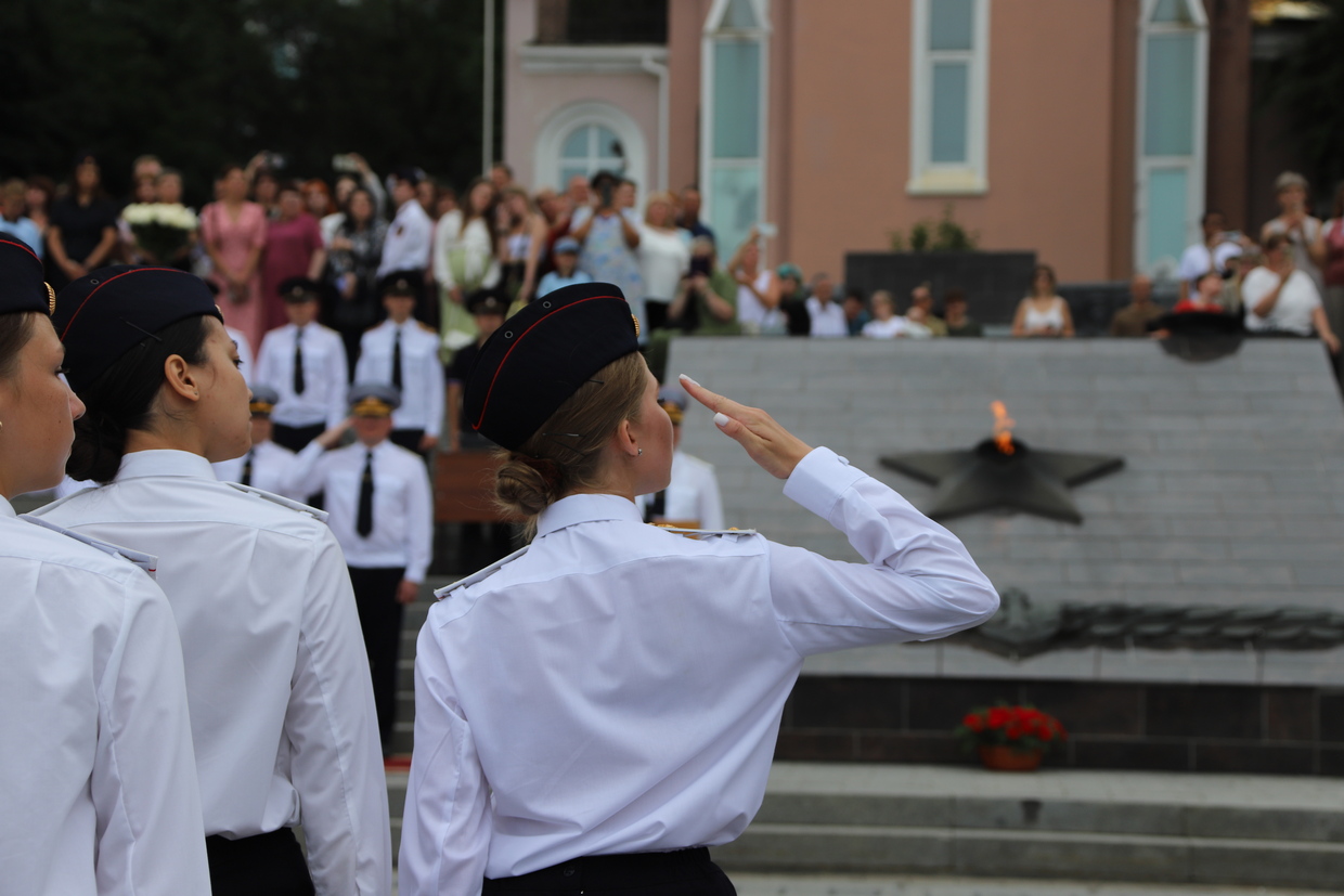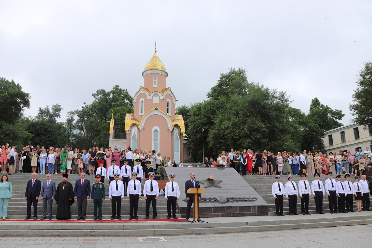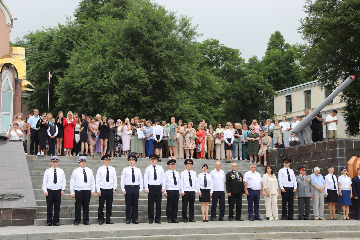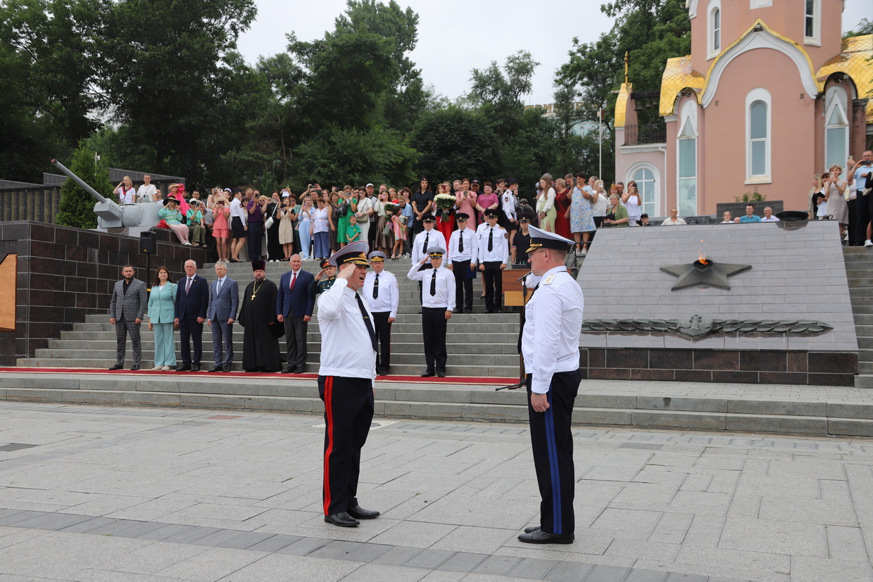 В торжественной церемонии выпуска слушателей пятого курса очной формы обучения Владивостокского филиала ФГКОУ ВО «ДВЮИ МВД России имени И.Ф. Шилова», которая состоялась у мемориального комплекса «Боевая слава Тихоокеанского флота» 1 августа, приняли участие руководители органов государственной власти и местного самоуправления, представители Владивостокской епархии Русской Православной Церкви, общественных организаций, ветераны, родственники выпускников.