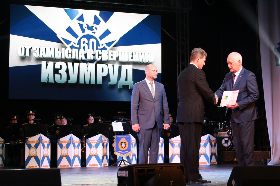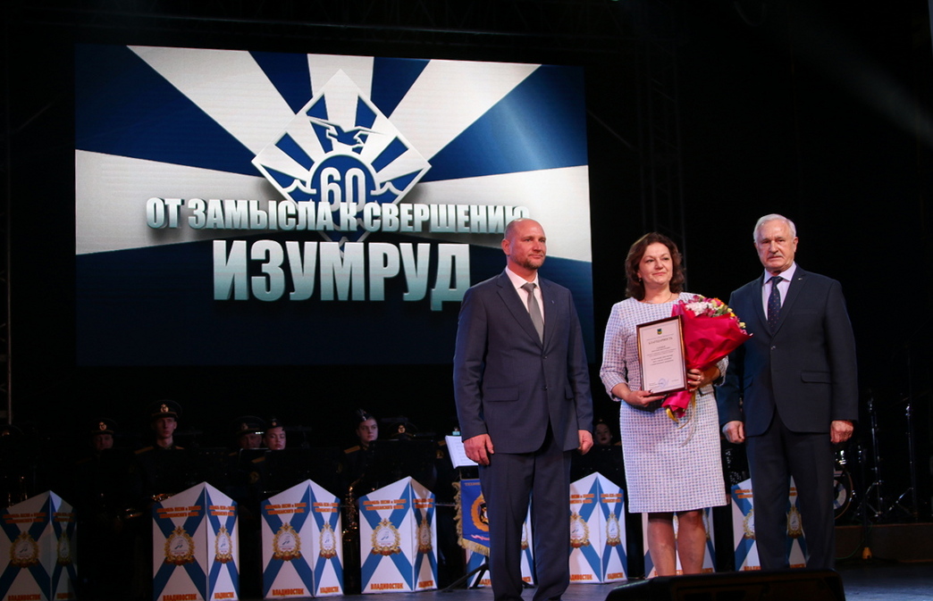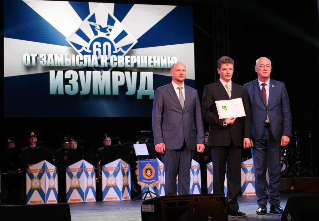 На прошедшем в Доме офицеров флота торжественном собрании, посвященном 60-летию со дня образования завода «Изумруд», состоялась церемония награждения работников предприятия за высокие производственные результаты.